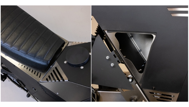 The Wildfire stands out with its unique stainless steel frame, marking it as the first electric motorcycle to incorporate sheet metal technology. This strong and durable frame maximizes space for essential components like batteries and control devices. Utilizing ultra-hard stainless steel and aluminum, the Wildfire’s skeleton is designed to resist dents, damage, and corrosion, ensuring longevity and durability. Each part is meticulously crafted and assembled in Germany by the skilled team at Black Tea Motorbikes, using robust rivets typically found in aircraft construction.